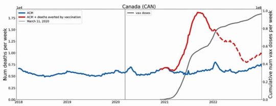 However, the calculations by Watson et al. predict that Canada would have seen a tripling in all-cause mortality by week for approximately a year if the vaccines had not been rolled out, the authors wrote.